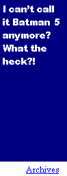 From now on, Warner Bros doesn't want people to call Batman 5 "Batman 5". They do not see it as a sequel and a continuation to the franchise. Apparently, the series will be starting over from the beginning, which gives proof to Batman: Year One being the movie. I, for one, think this is a good move because it would bring back all the classic villains killed in the first 3 Bat films.
